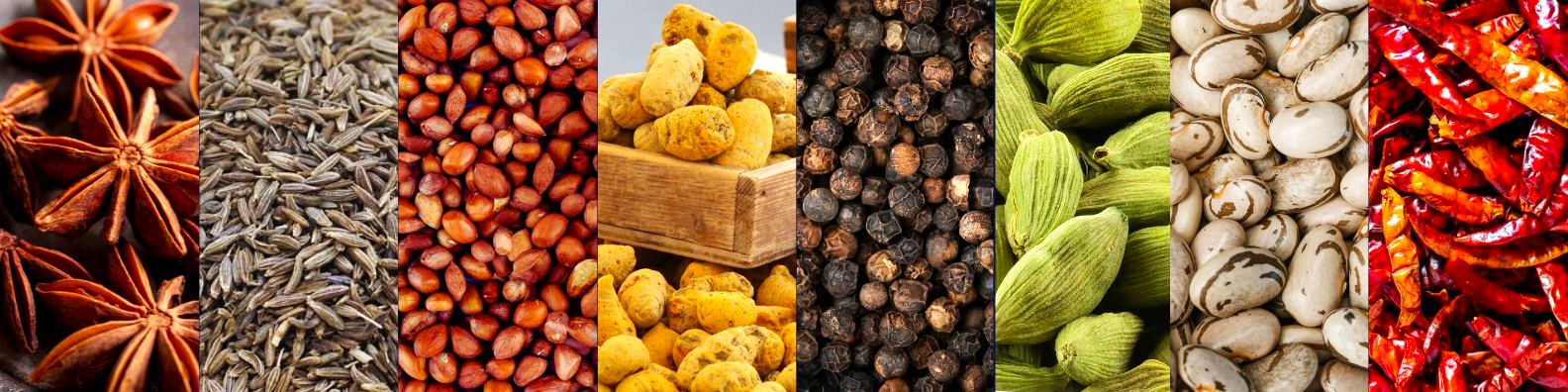 Red Chilli | Black Pepper | Turmeric | Cumin Seeds | Peanuts | Clove | Star Anise | Ginger | Chickpea | Various Dal